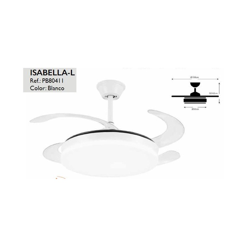 VENTILADOR ISABELLA-L BLANCO 35W MOTOR DC 6 VEL. REG. 108CM