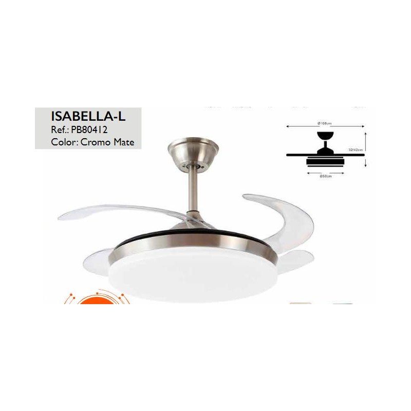 VENTILADOR ISABELLA-L CROMO MATE 35W MOTOR DC 6VEL. 108CM