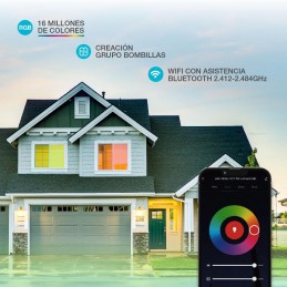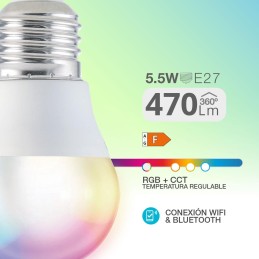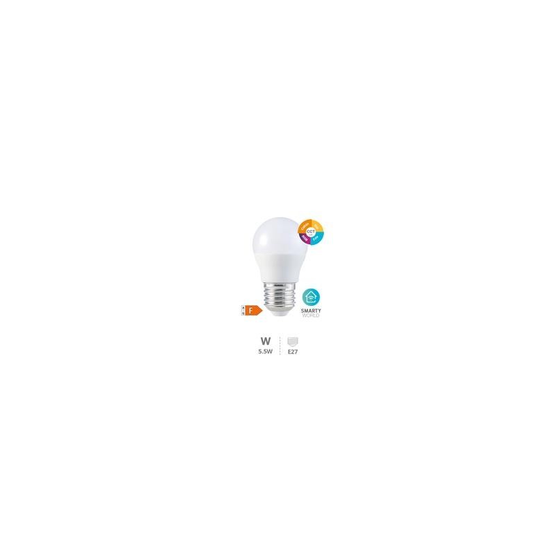 Bombilla LED esférica inteligente vía wifi y bluetooth 5,5W E27 RGB + CTT regulable