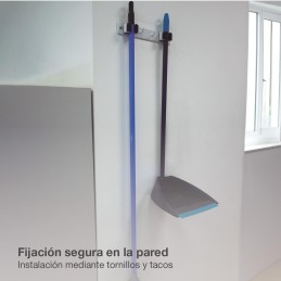 SUJETAESCOBAS DOBLE ACERO CON RODILLOS GOMA - BLANCO LACADO