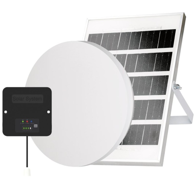 Ilumina el ahorro con el plafón solar LED Telfer de GSC Evolution. Ideal para zonas sin acceso a electricidad, como cobertizos, terrazas o garajes.