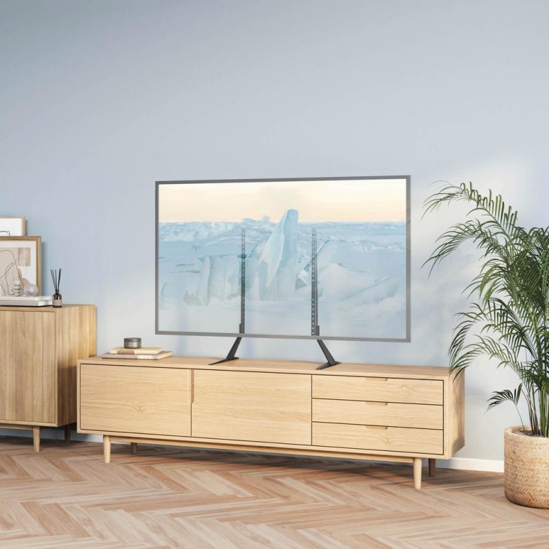 El soporte de patas de sobremesa es ideal para colocar encima de un mueble. Este soporte de TV clásico no solo permite ajustar la altura (en dos niveles) de la TV, sino que, además, da un toque chic a la estancia.