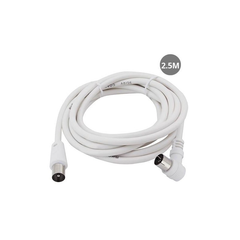 CABLE COAXIAL TV ACODADO 2,5M DE MACHO A HEMBRA BLANCO