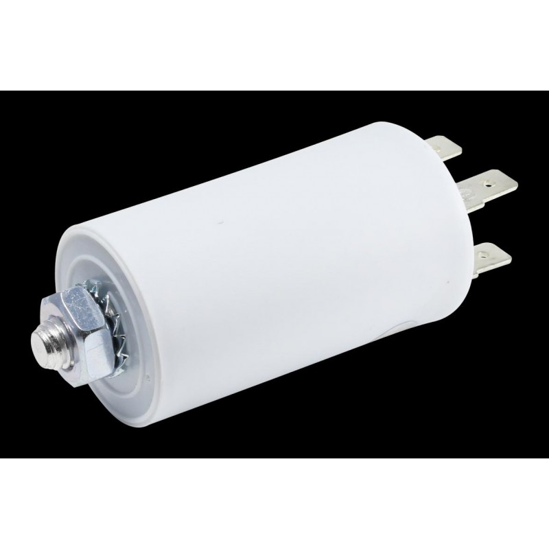 Condensador de polipropileno, normalmente para el arranque de motores de electrodomésticos (lavadoras, secadoras, lavavajillas,etc).