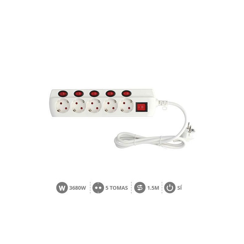 Base múltiple 5 tomas multi interruptor